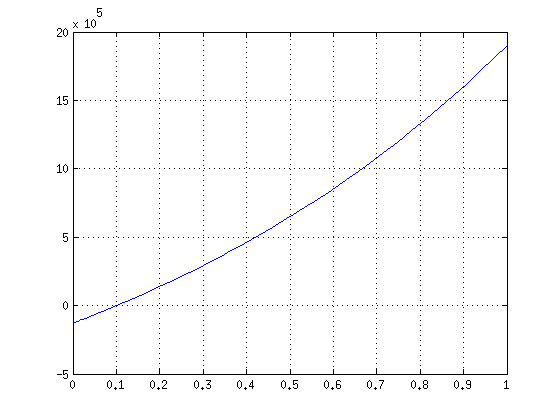fplot(f,[0,1]) % fplot ja ezplot lienevat identtisia. grid on;shg format long lam=fzero(f,0.2)
